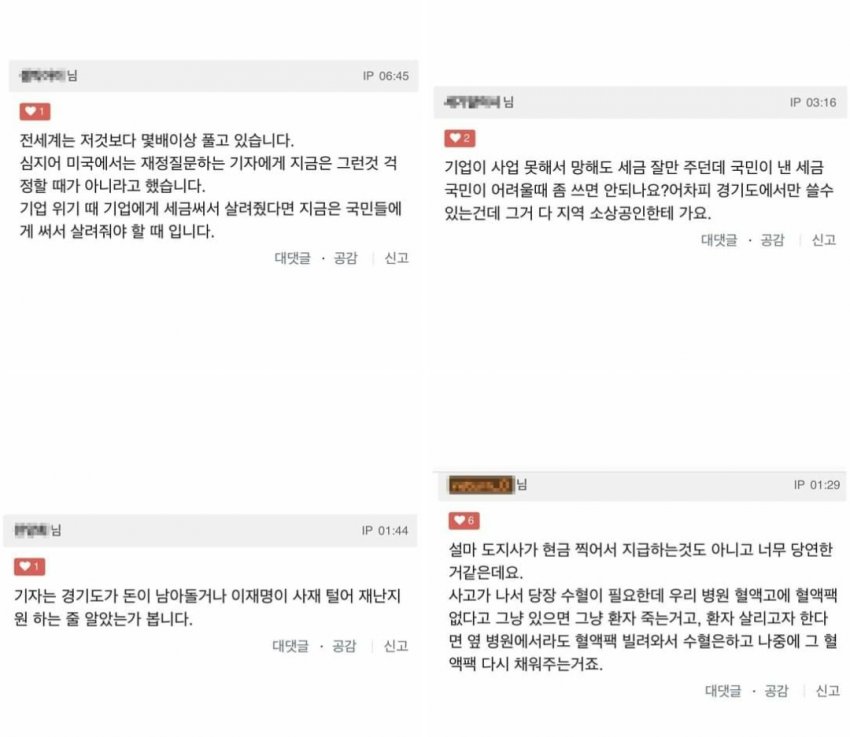 이 지사는 커뮤니티 '클리앙'의 댓글들을 인용해 자신의 정책을 뒷받침했습니다.
