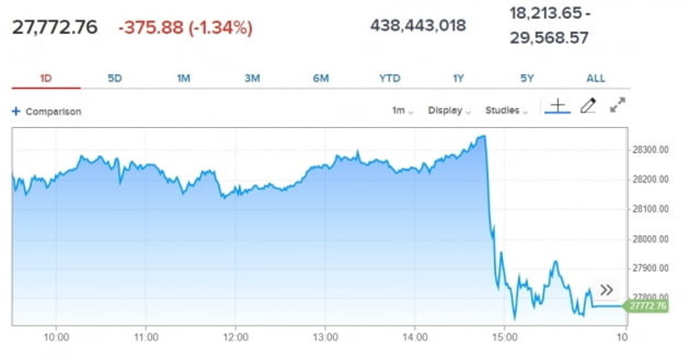 다우지수는 부양책에 대한 기대로 장중 200포인트 가량 오르다 트럼프 대통령 트윗 이후 순식간에 하락세로 전환했습니다.