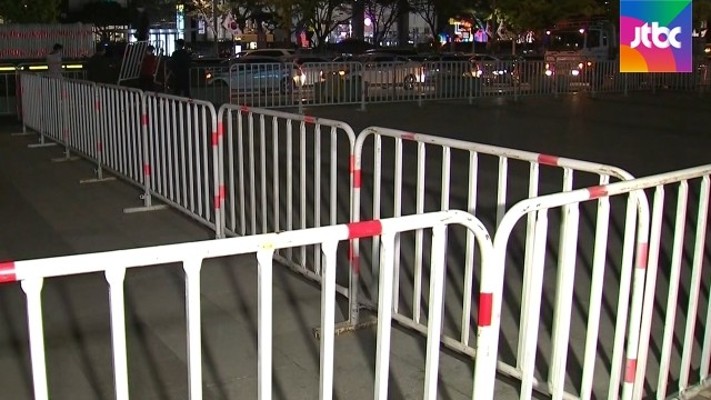 지금도 광장 주변이 통제돼 있습니까?오후 6시 30분 이후부터, 지금 보시는 것처럼 광화문 광장 주변에 철제 울타리를 설치하는 작업을 시작했습니다.지금은 설치 작업이 모두 끝난 상황입니다.광장 안쪽과 바깥쪽에 모두 철제 울타리가 설치돼 있습니다.