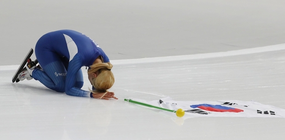 김보름은 논란 이후 본인의 주력 종목인 매스스타트에 은메달을 따냈고 이후 트랙을 돌면서 관중석을 향해 큰절을 올리기도 했습니다.