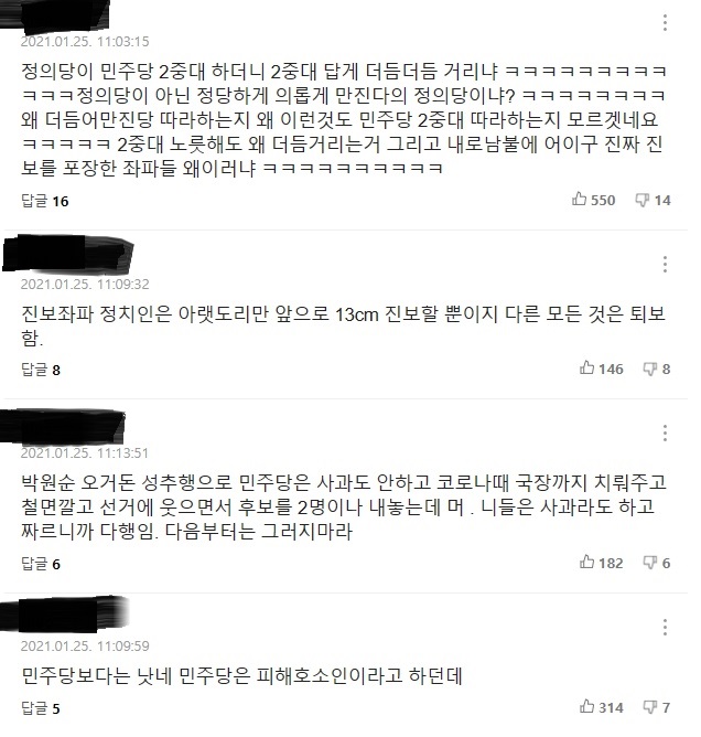또한 현재의 정의당은 민주당의 2중대일뿐 약자를 대변하고 있지도 않습니다.