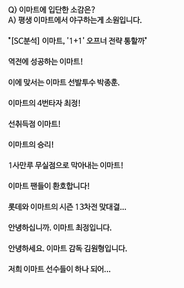 SK와이번스라는 이름은 역사 속으로 사라졌지만 다시 태어날 구단도 강팀의 모습을 보였으면 합니다.